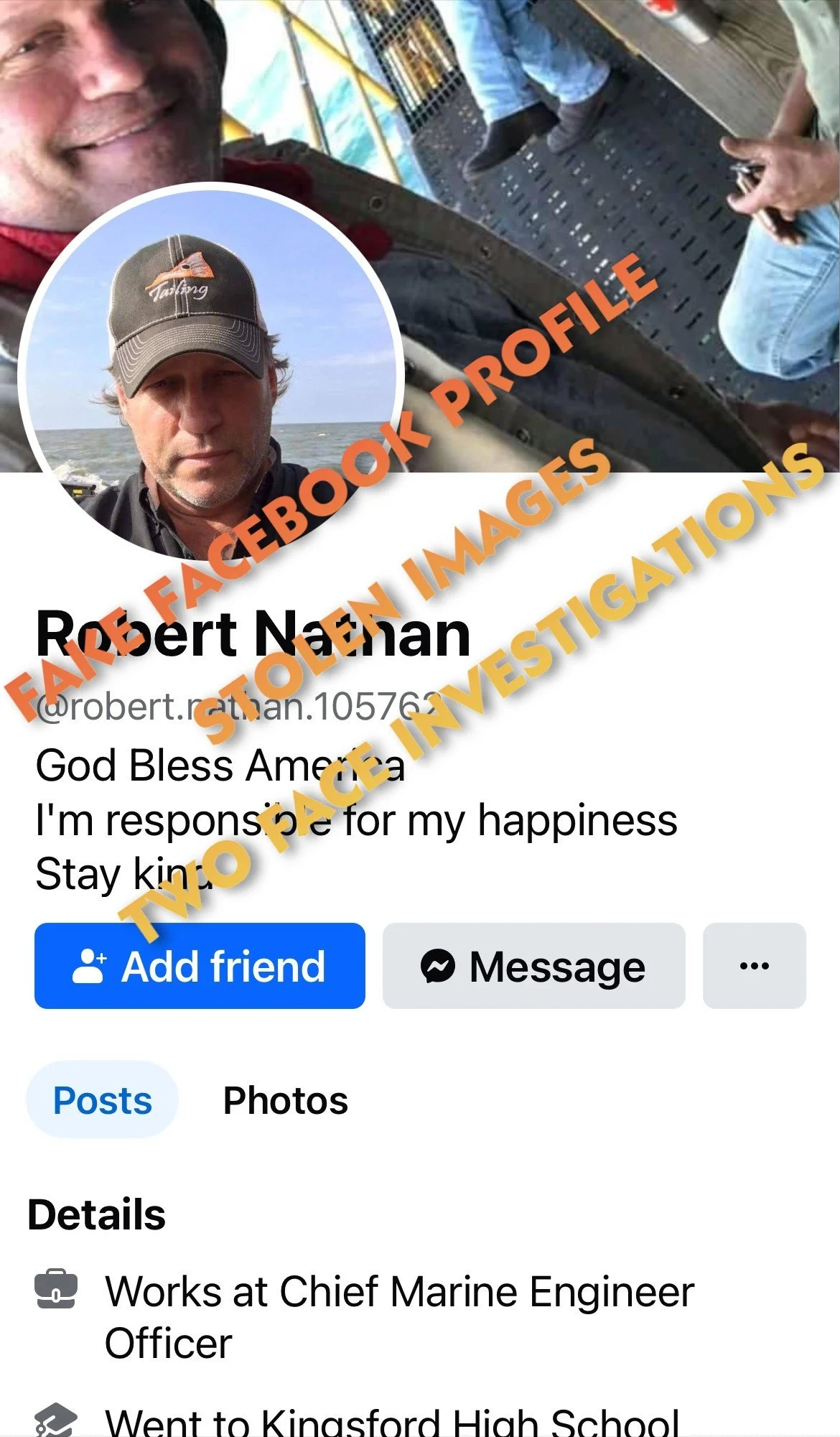 Scammers steal photographs of innocent people and use them to build fake dating and social media profiles. They create convincing stories, fake careers, and fabricated lives designed to gain trust.